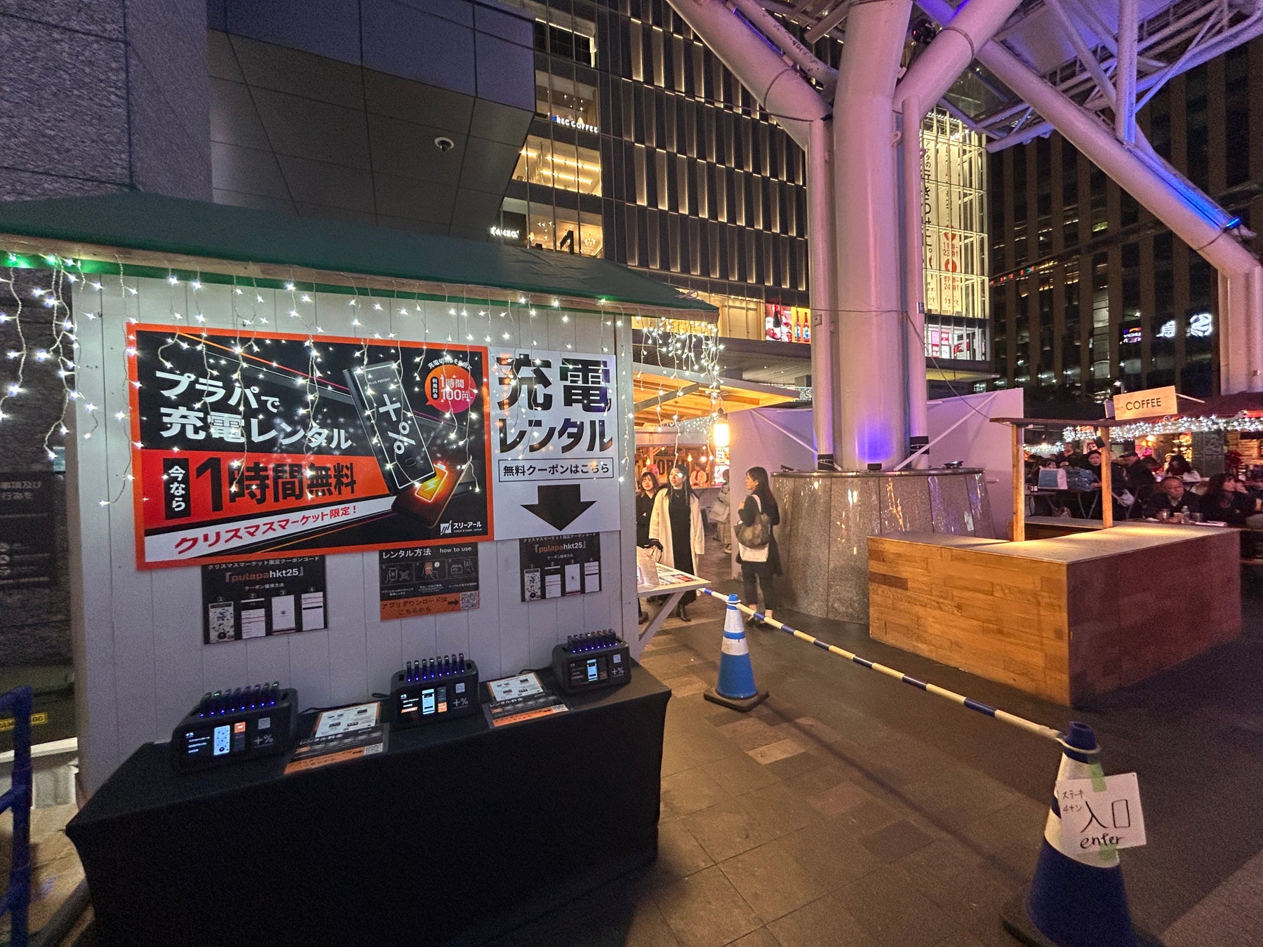 煌びやかなイルミネーションが福岡の街を彩る冬の風物詩「柴田産業 presents CHRISTMAS MARKET in 光の街・博多」(JR博多駅前広場)において、モバイルバッテリーシェアリングサービス「+% PLUS PERCENT(プラスパーセント)」(以下、プラパ)のステーションを、本日2025年11月20日(木)より設置いたしました。