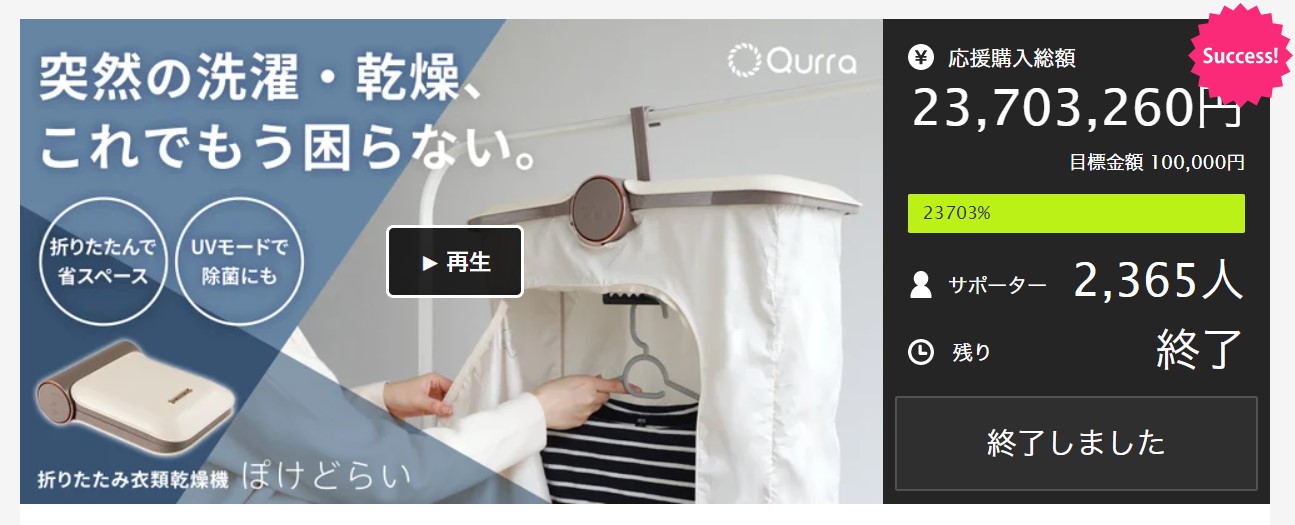 スリーアールがMakuakeへの出品を開始したのは2019年12月でした。それから3年間、折りたたみ式衣類乾燥機「ぽけどらい」や、あぐらがかけるゲーミングチェア「アグリラックス」など50件*のプロジェクトを実施し、合計2.8億円*の応援購入をしていただきました。そのような実績がMakuakeの目に留まり、「ほかの出品者もサポートしてほしい」と依頼をされたのが本サービスを始めるきっかけでした。