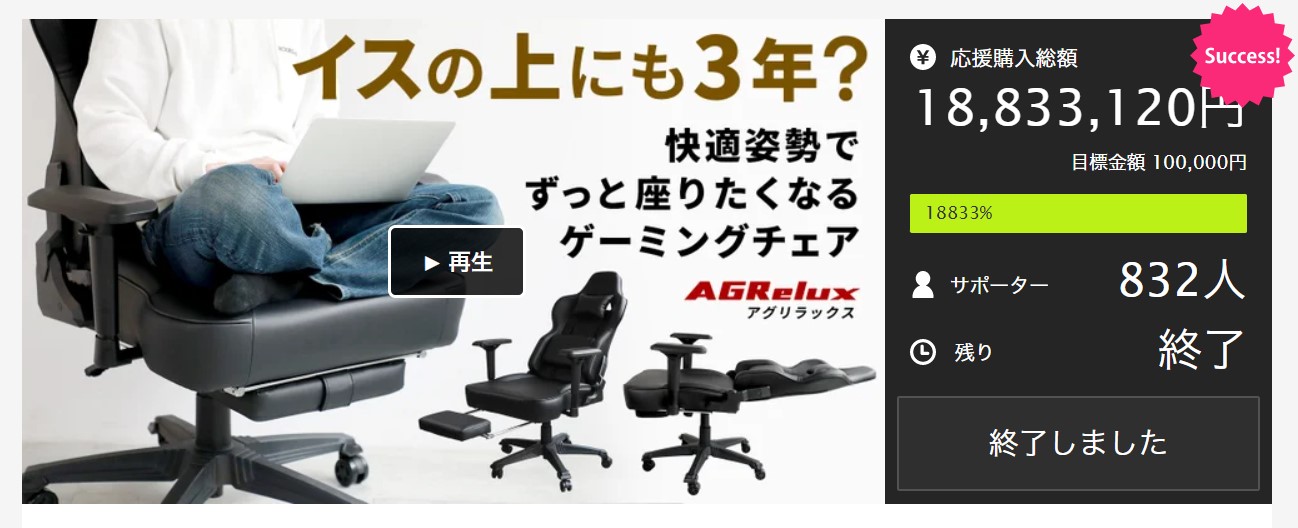スリーアールがMakuakeへの出品を開始したのは2019年12月でした。それから3年間、折りたたみ式衣類乾燥機「ぽけどらい」や、あぐらがかけるゲーミングチェア「アグリラックス」など50件*のプロジェクトを実施し、合計2.8億円*の応援購入をしていただきました。そのような実績がMakuakeの目に留まり、「ほかの出品者もサポートしてほしい」と依頼をされたのが本サービスを始めるきっかけでした。